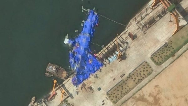 Satellite imagery captured what remained of a mangled 5,000-ton North Korean naval destroyer damaged during its launch ceremony this week, leaving the country’s dictator...